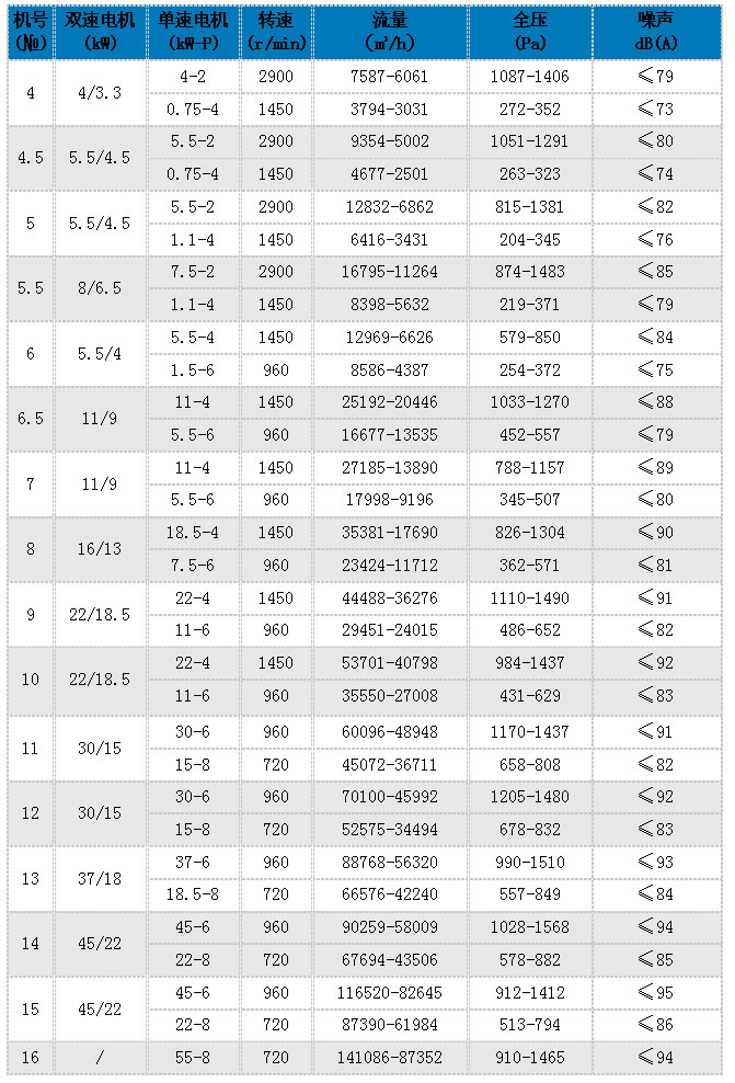 HTF軸流式Ⅰ、Ⅱ型 / HTF斜流式Ⅲ、Ⅳ型主要參數(shù)